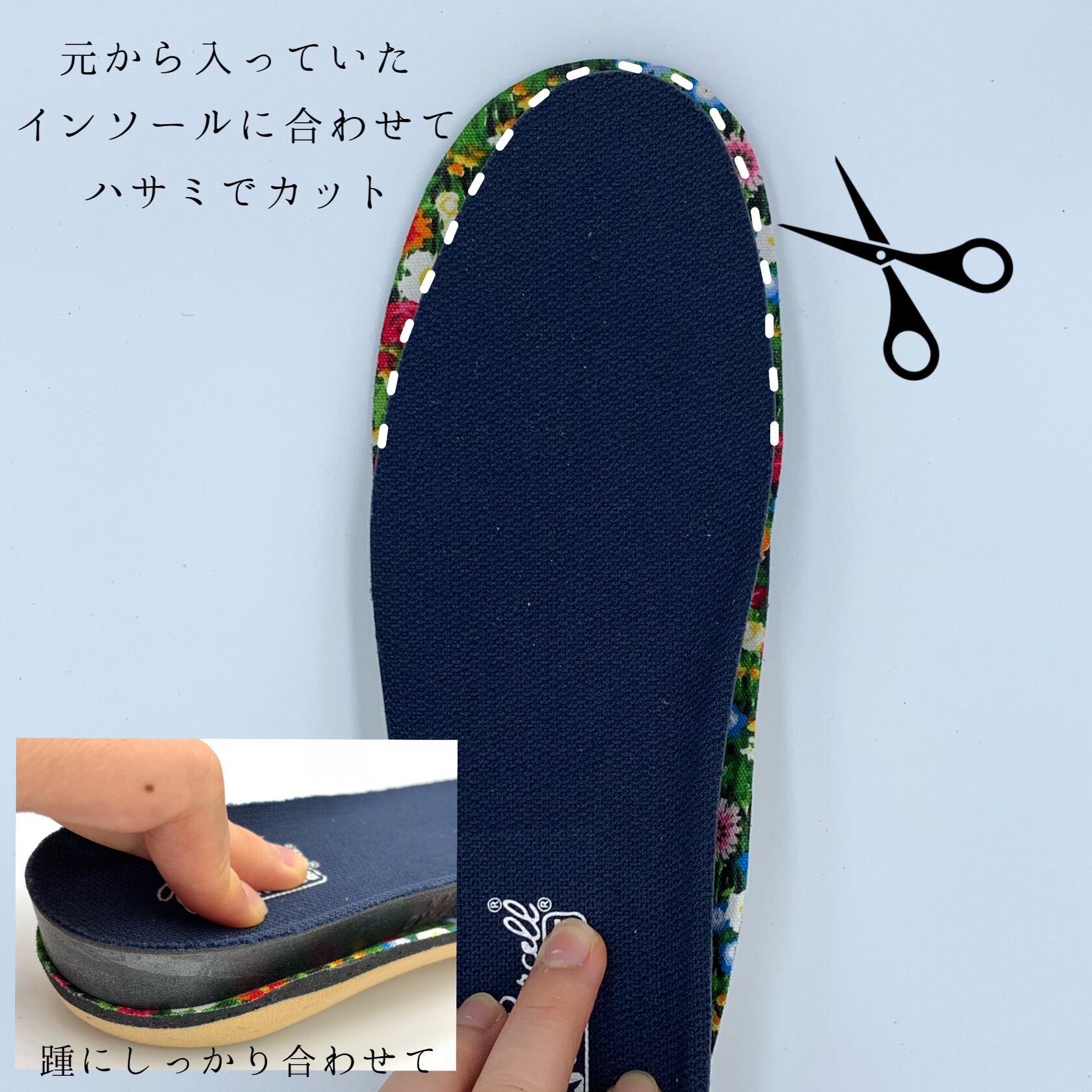 元々入っている中敷きを外して代わりに入れるインソールですので、重ねていれないようお願い致します。